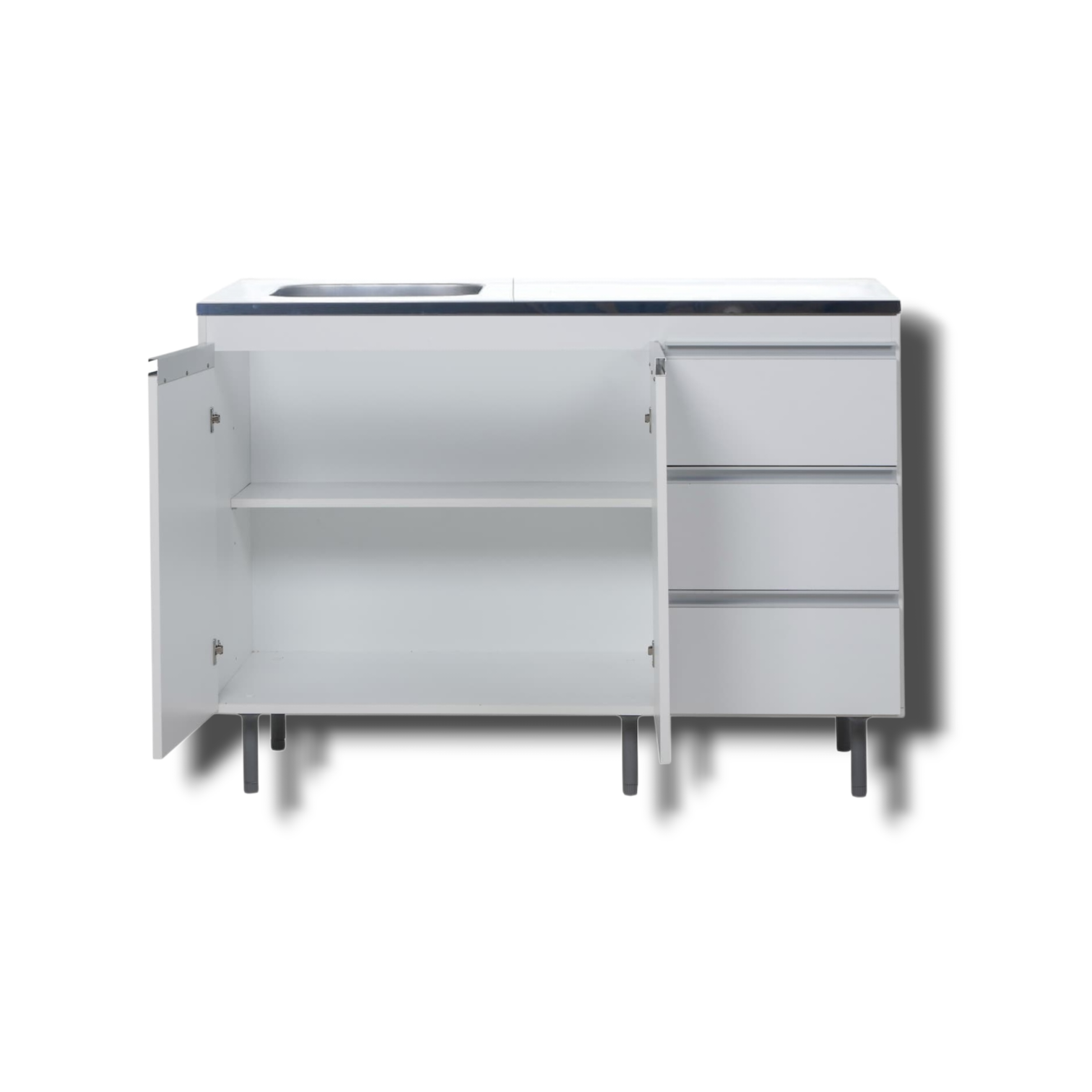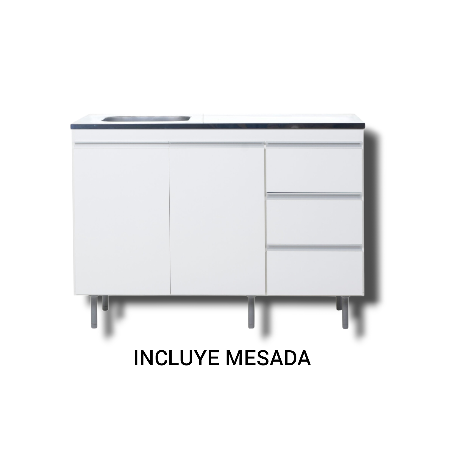 LÍNEA ARCO - RICHEZZE Bajo Mesada - 2 Puertas - 3 Cajones - 1 estante Mueble listo para armar, embalado en una sólida caja de cartón Incluye manual de instrucciones de armado