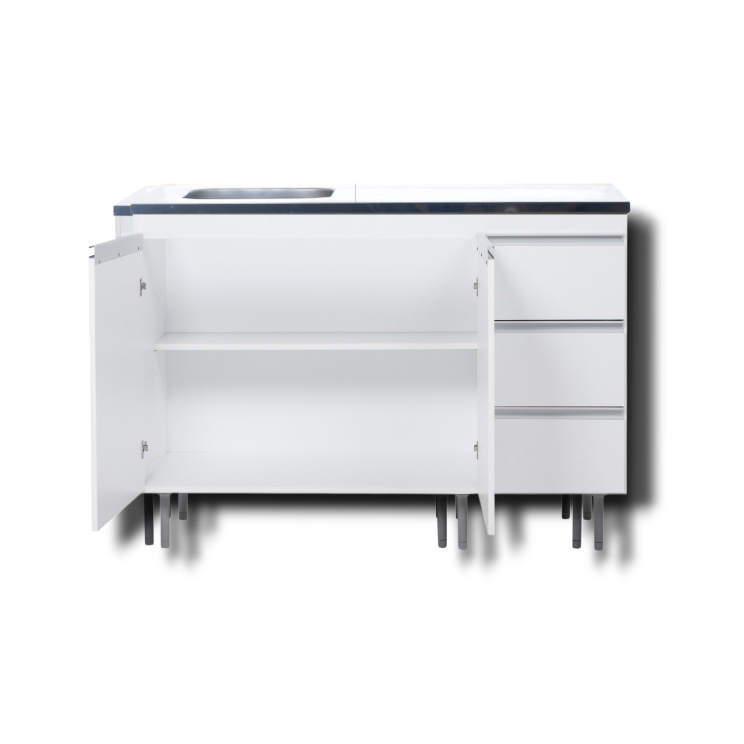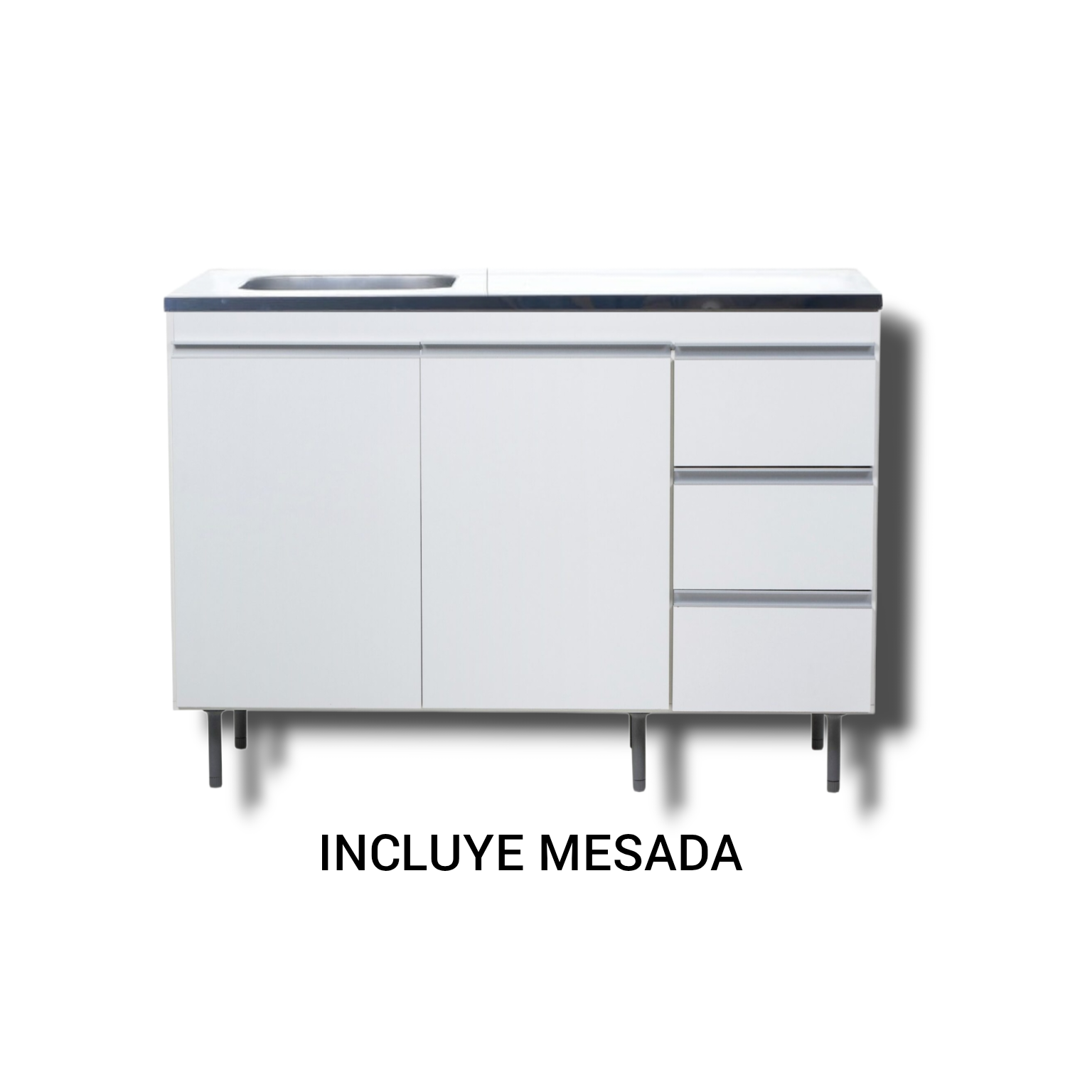 LÍNEA ARCO - RICHEZZE Bajo Mesada - 2 Puertas - 3 Cajones - 1 estante Mueble listo para armar, embalado en una sólida caja de cartón Incluye manual de instrucciones de armado