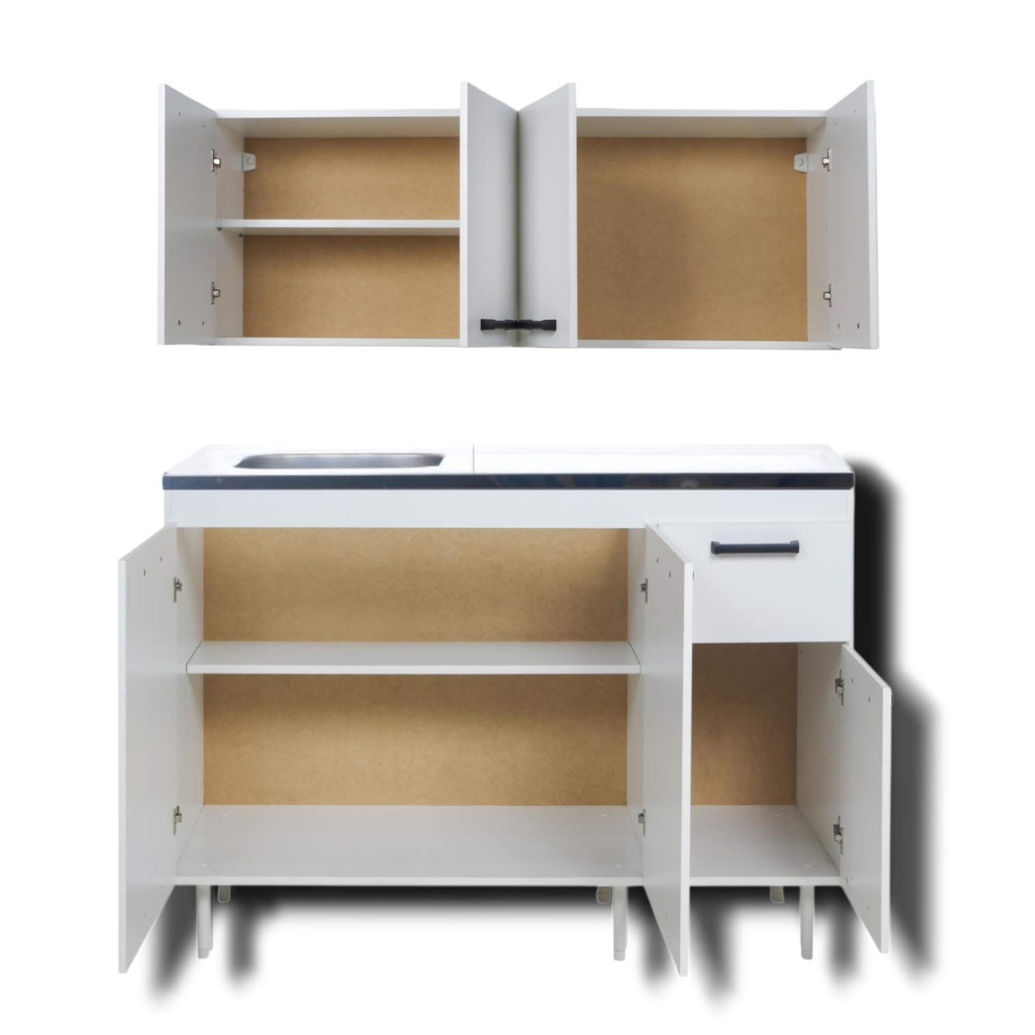 Muebles listo para armar, embalado en una sólida caja de cartón Incluye manual de instrucciones de armado INCLUYE MESADA (PILETA CENTRAL O AL COSTADO) CARACTERÍSTICAS