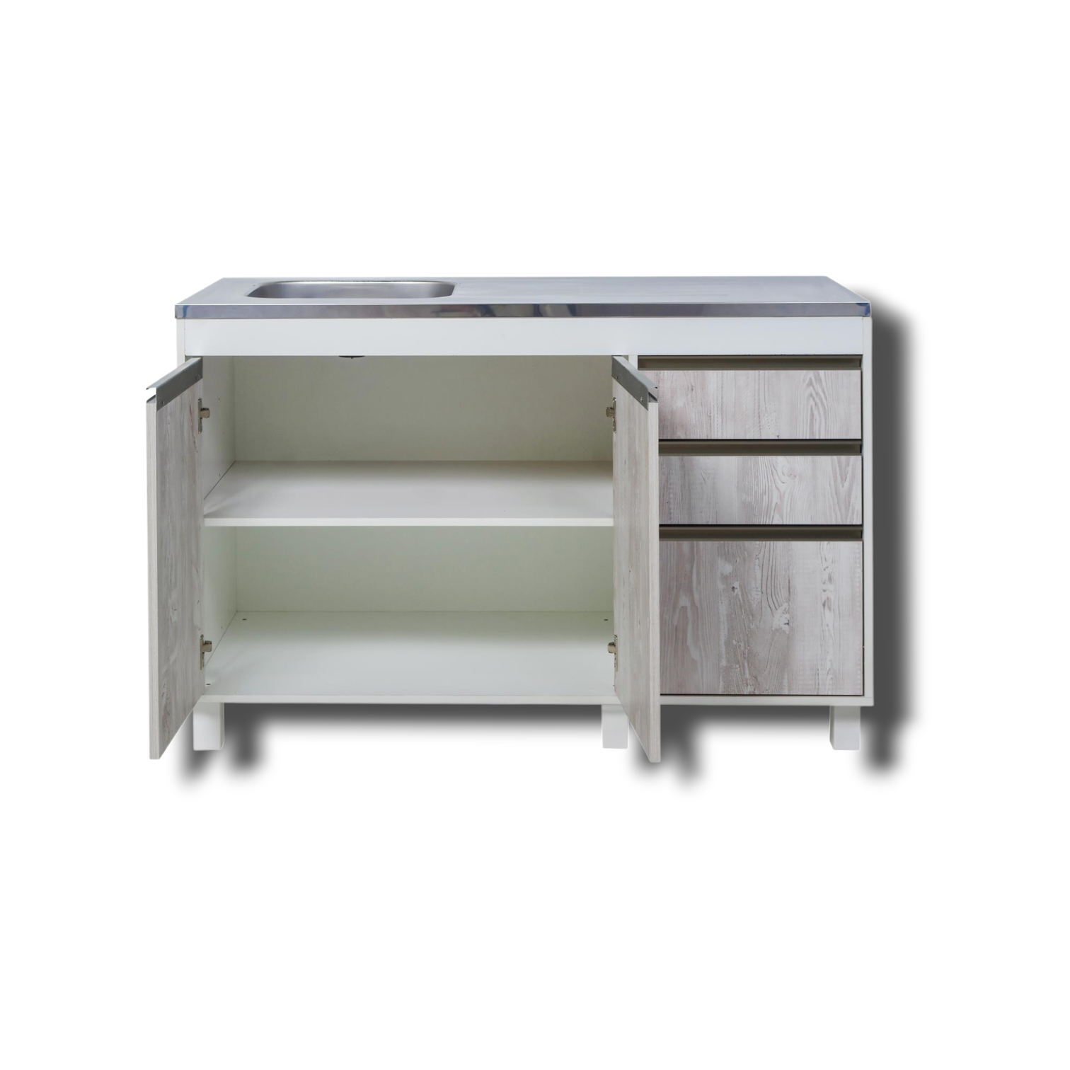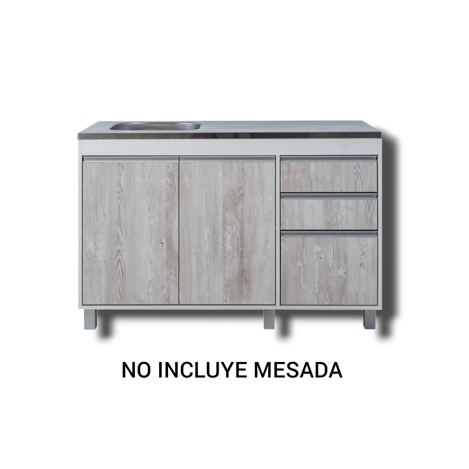 LÍNEA SORRENTO - RICHEZZE Bajo Mesada - 2 Puertas - 3 Cajónes - 1 Estante Mueble listo para armar, embalado en una sólida caja de cartón Incluye manual de instrucciones de armado