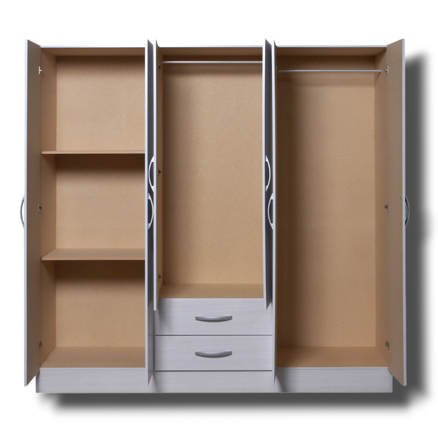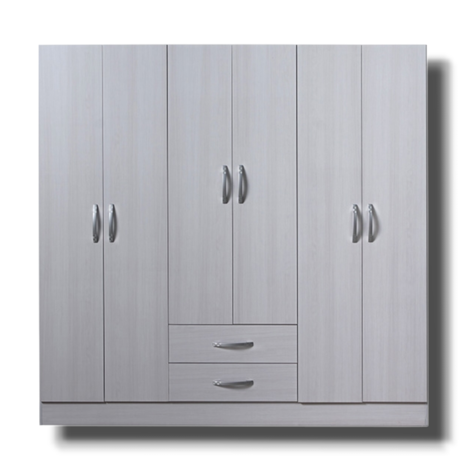 LÍNEA BENEVENTO - RICHEZZE Placard - 6 Puertas de abrir - 2 Cajones - 2 Estantes - 2 Perchero Mueble listo para armar, embalado en una sólida caja de cartón Incluye manual de instrucciones de armado CARACTERÍSTICAS