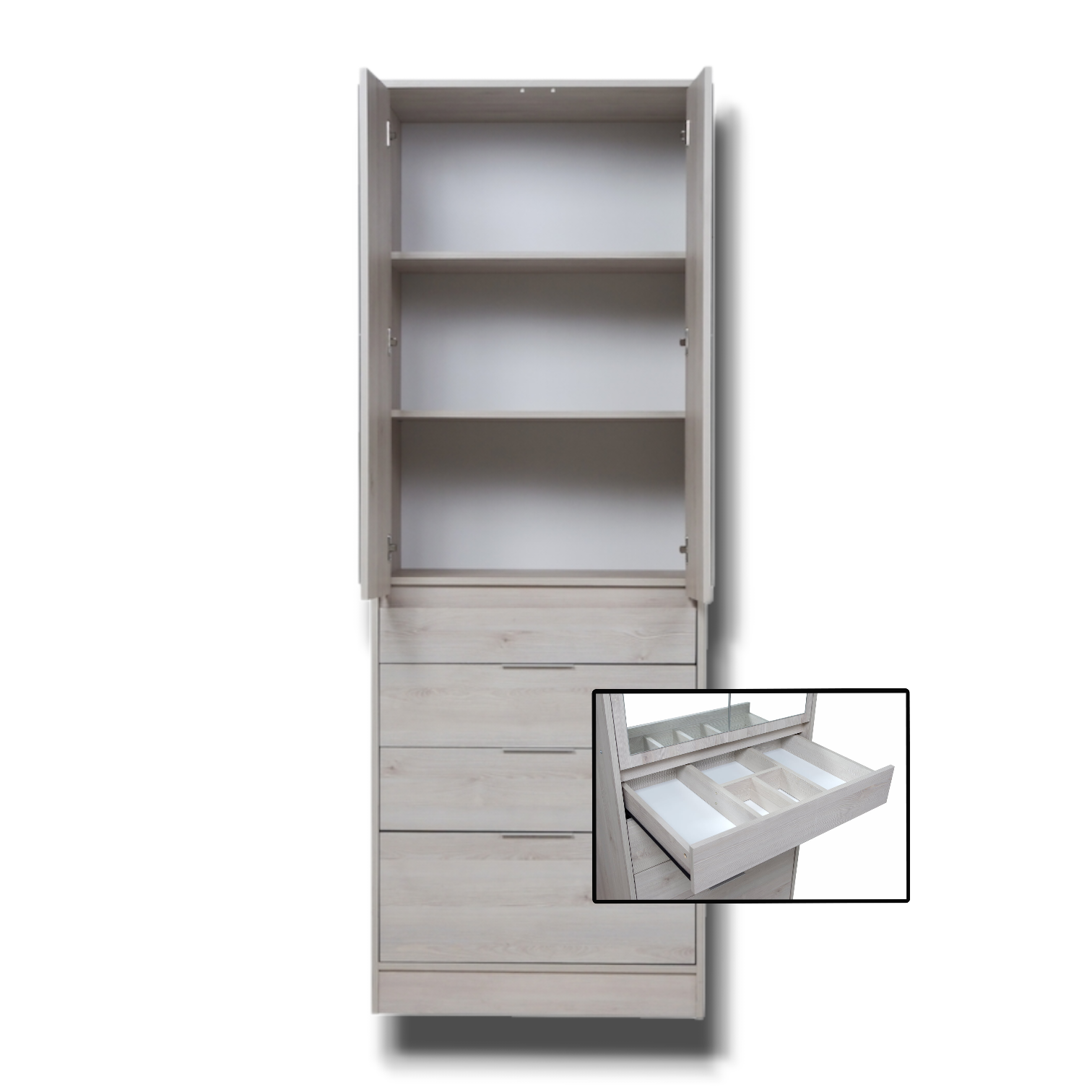 Placard con espejos - 2 Puertas de abrir - 4 Cajones - 2 Estantes