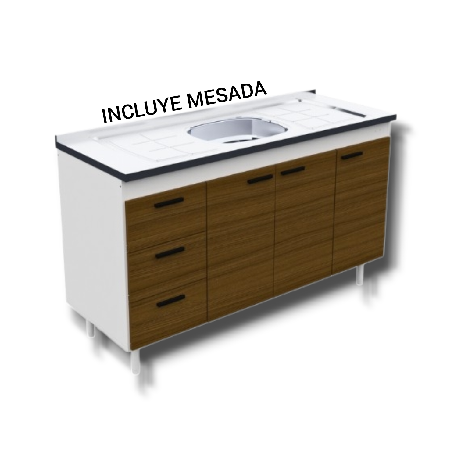 Cajoneras reversibles, se pueden armar tanto a la izquierda como a la derecha. Mueble listo para armar, embalado en una sólida caja de cartón Incluye manual de instrucciones de armado INCLUYE MESADA (PILETA CENTRAL O AL COSTADO)
