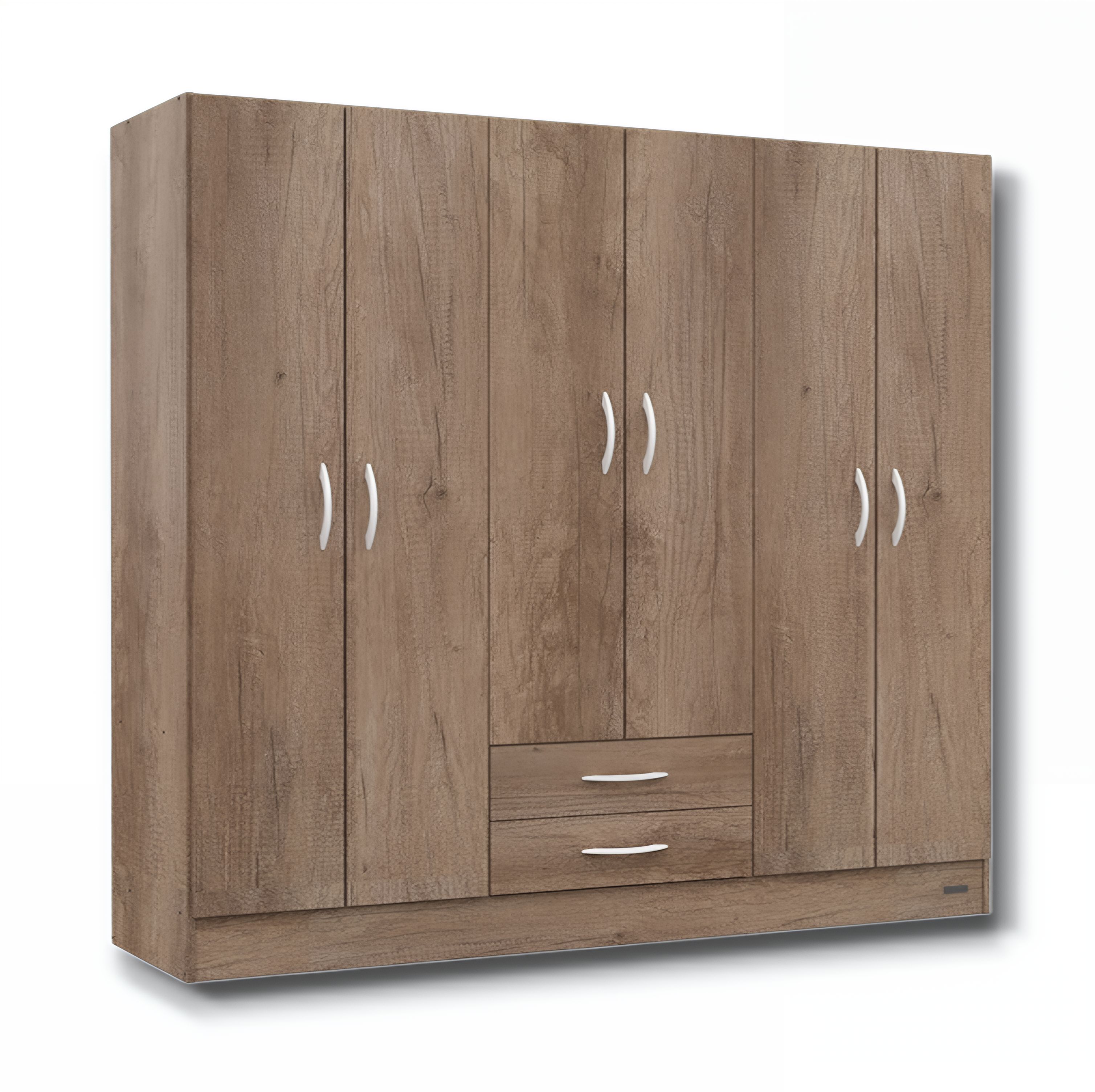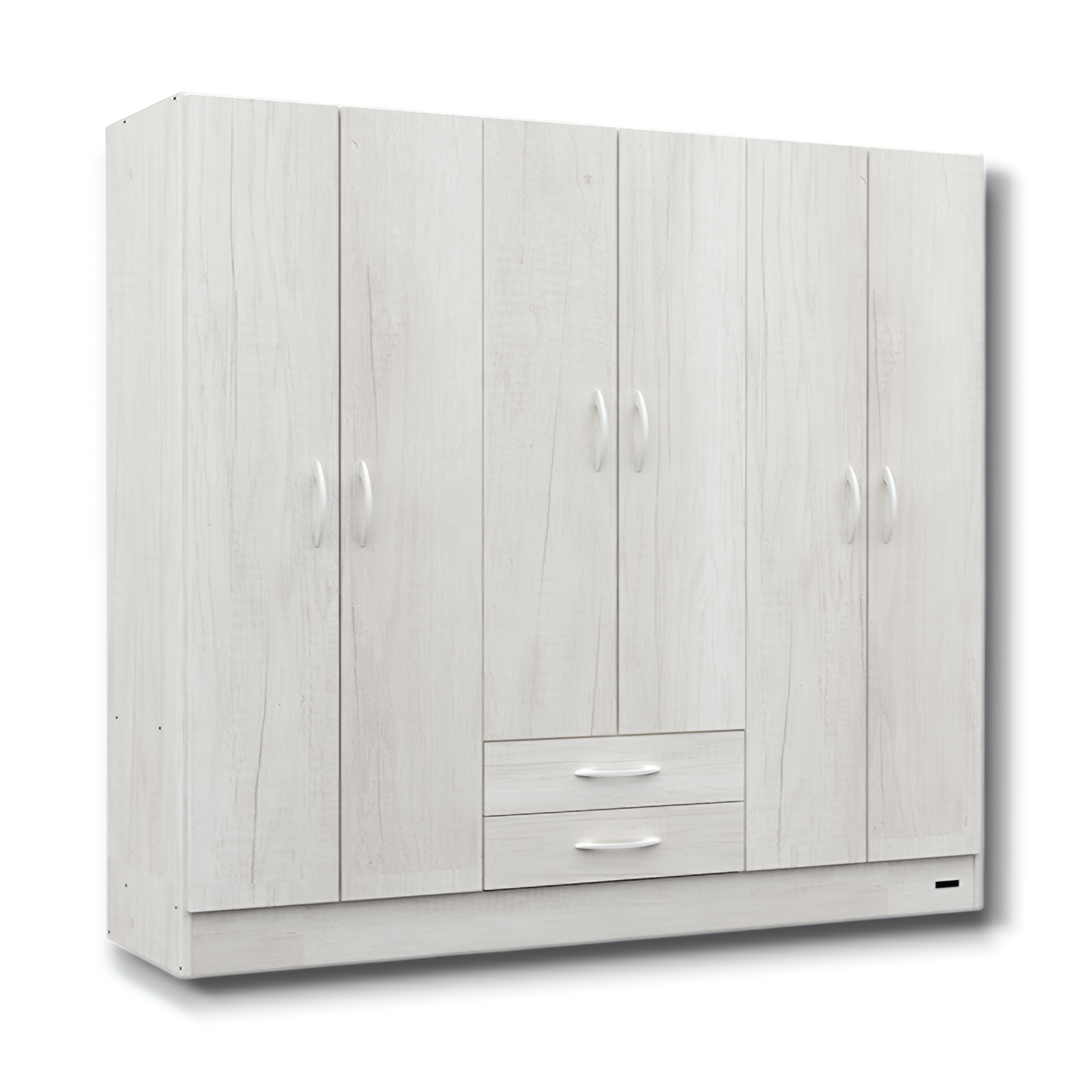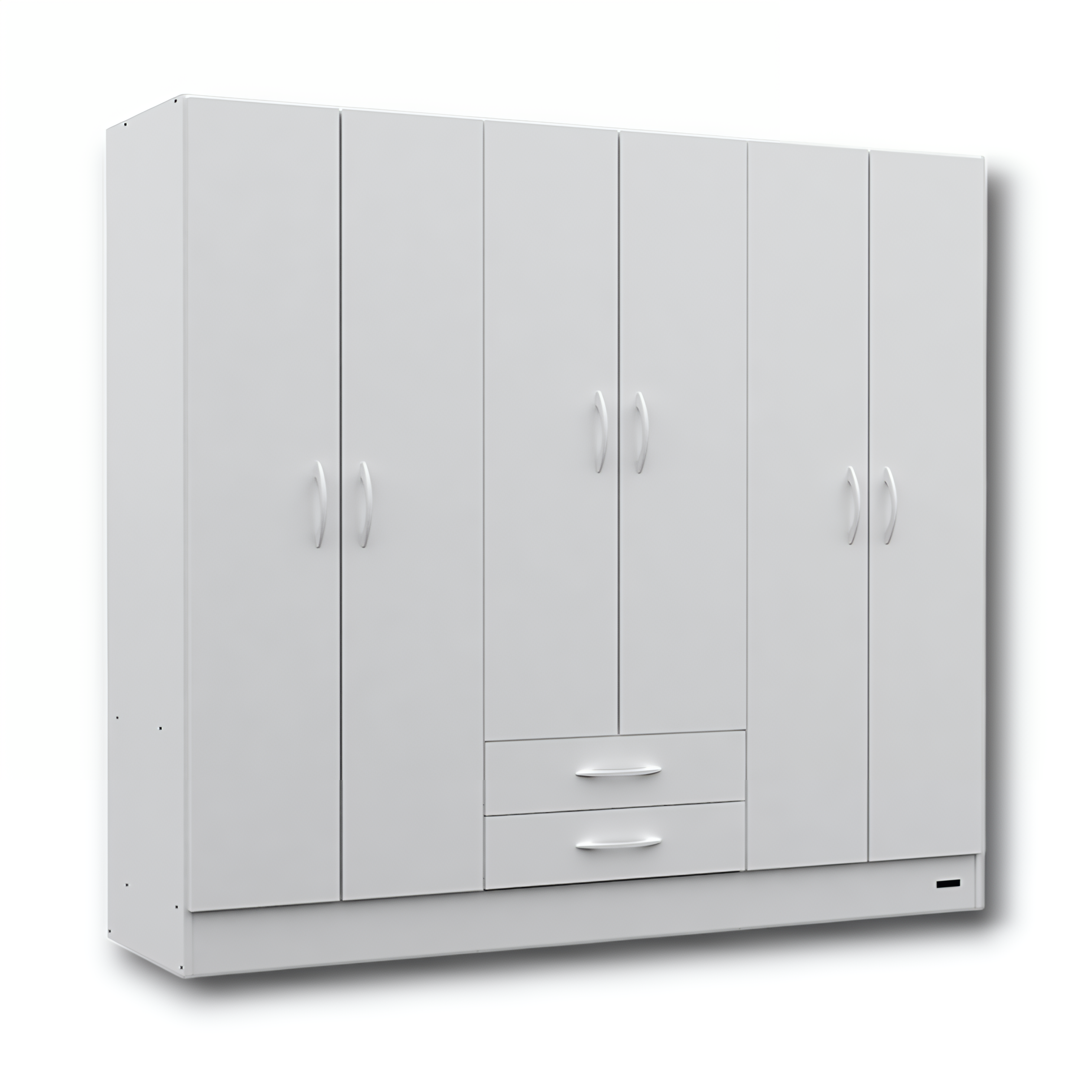 LÍNEA PACK - MOSCONI Placard - 6 Puertas de abrir - 2 Cajones - 3 Estantes - 2 Percheros Mueble listo para armar, embalado en una sólida caja de cartón Incluye manual de instrucciones de armado CARACTERÍSTICAS