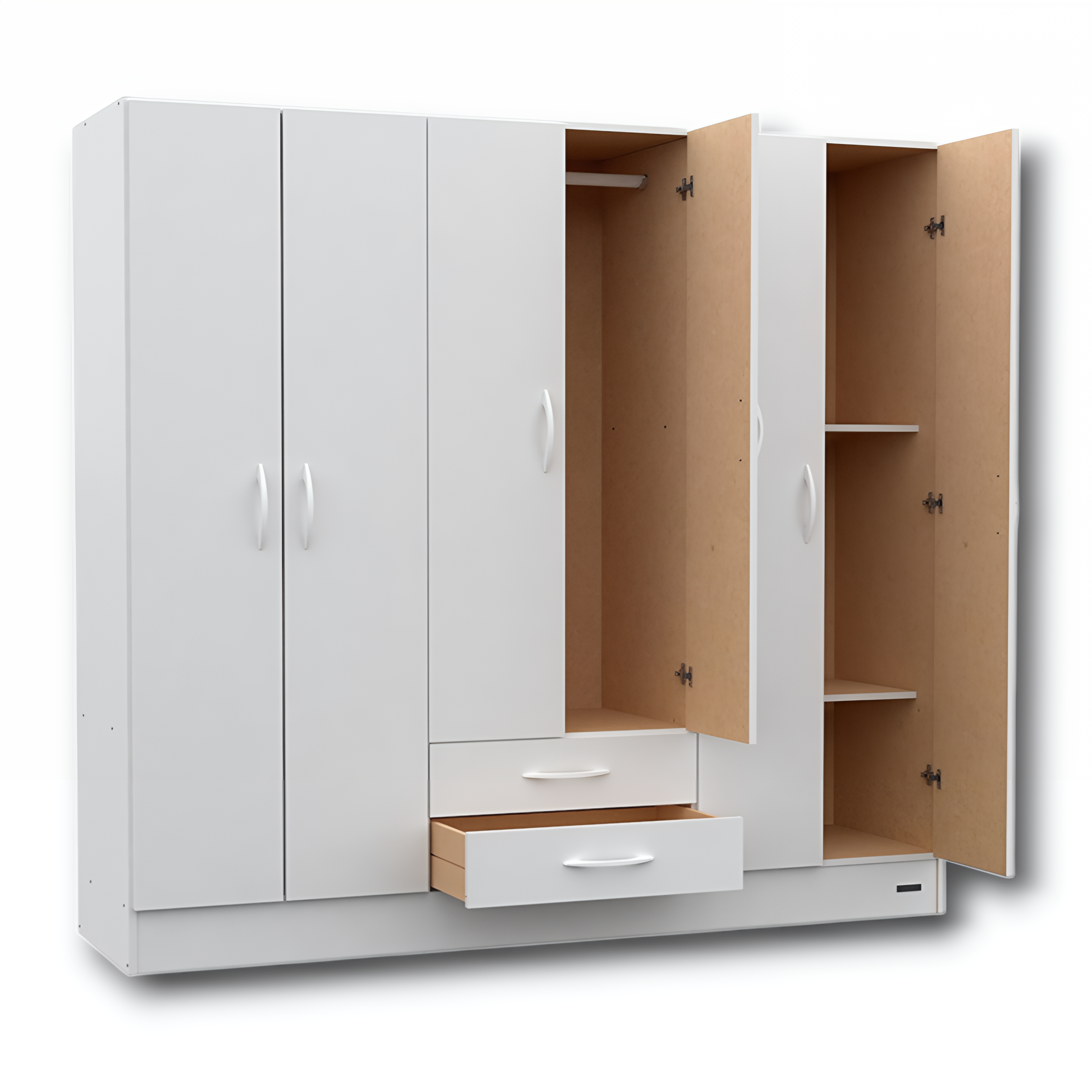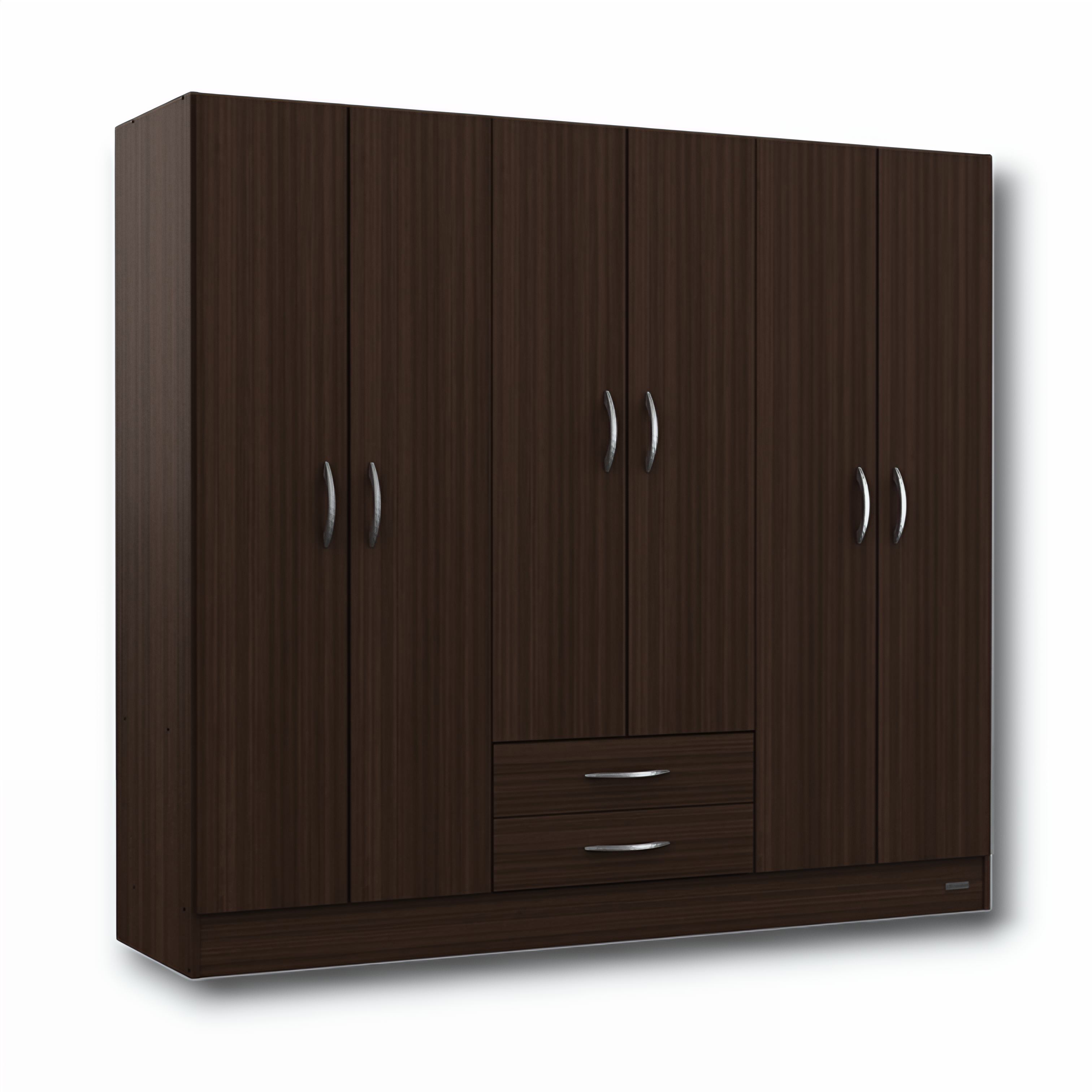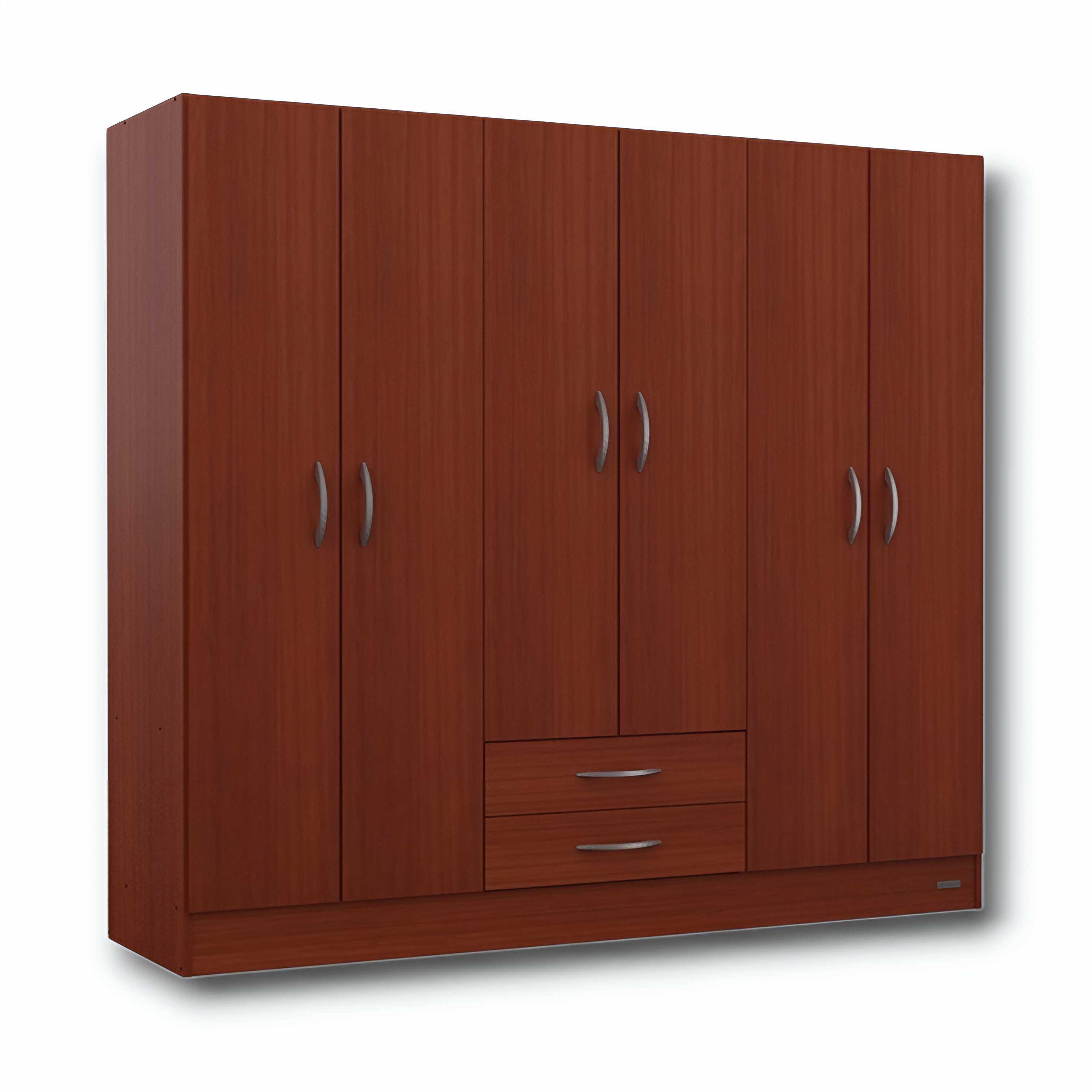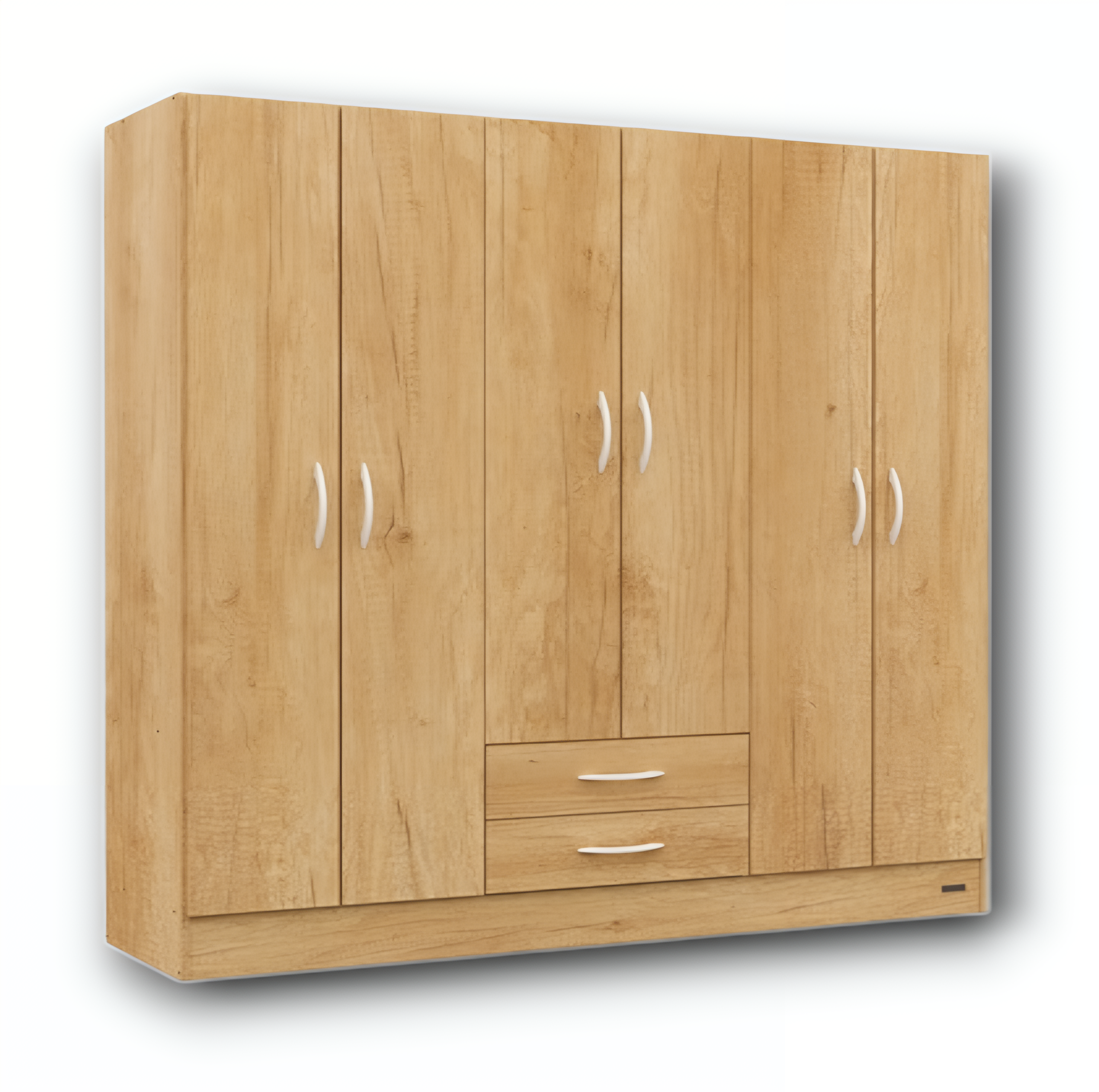 LÍNEA PACK - MOSCONI Placard - 6 Puertas de abrir - 2 Cajones - 3 Estantes - 2 Percheros Mueble listo para armar, embalado en una sólida caja de cartón Incluye manual de instrucciones de armado CARACTERÍSTICAS