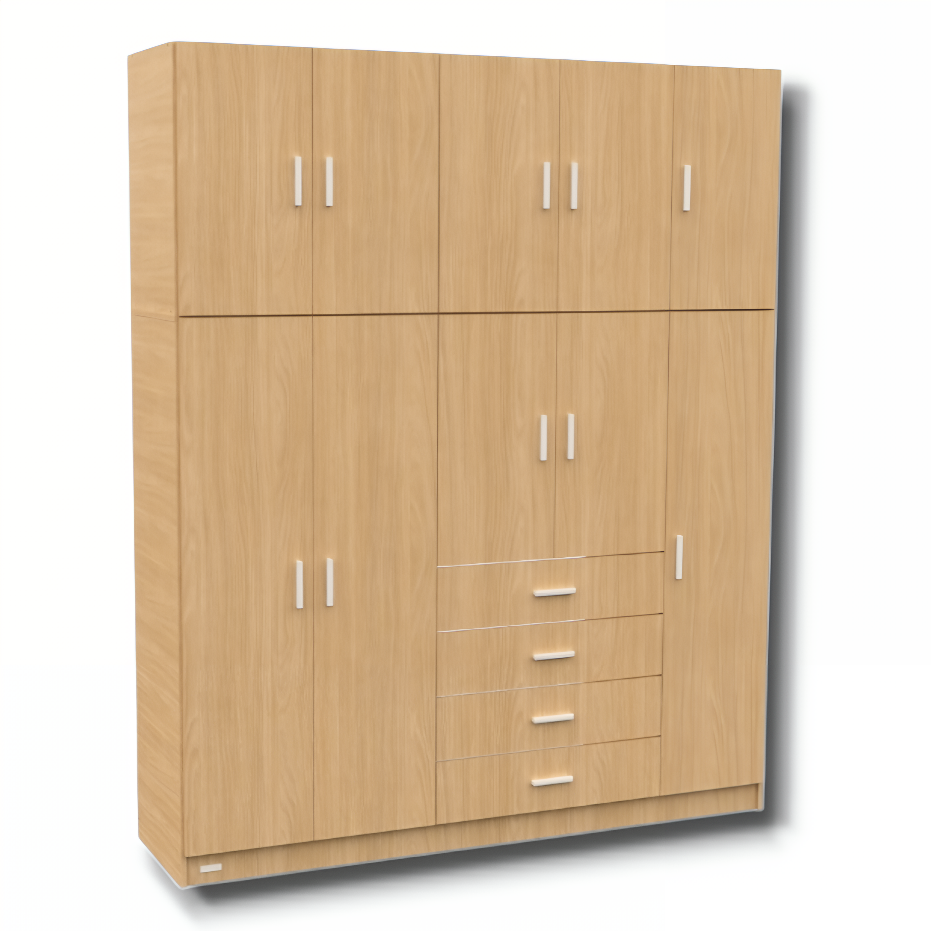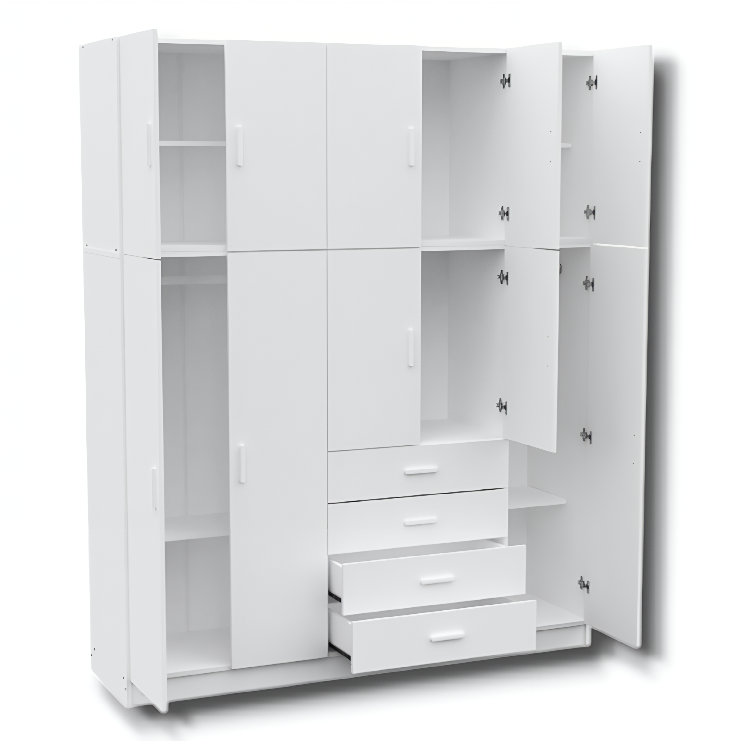 Placard - 10 Puertas de abrir - 4 Cajones - 4 Estantes - 2 Percheros